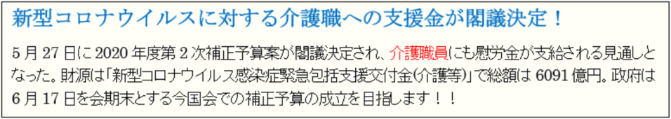 事の発端は以下の記事にある医療介護従事者に対する支援金の対象に『介護職が含まれていること』