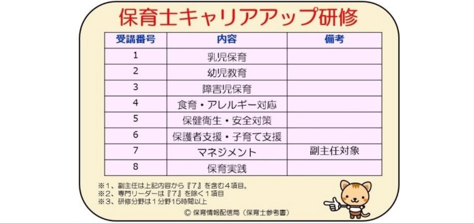 保育士の処遇改善Ⅱの項目に該当する「保育士キャリアアップ研修」を2022年までに確立する為に、多くの保育士が研修に参加していると思いますが、主任保育士はこのキャリアアップ研修の8項目は全て習得しているものとみなされているのをご存知でしょうか??