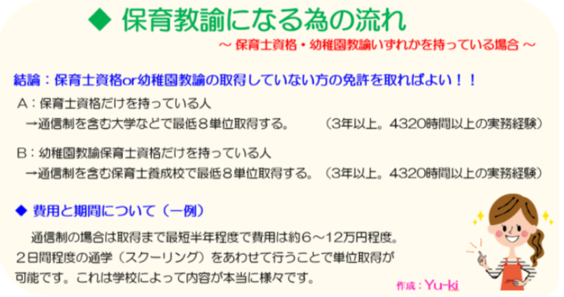 保育教諭の資格登録 (取得方法)と幼保特例制度