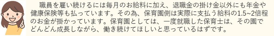なぜなら、退職金の支払いは義務ではないからです。 退職金制度は、保育園の運営法人が任意で導入する制度です。