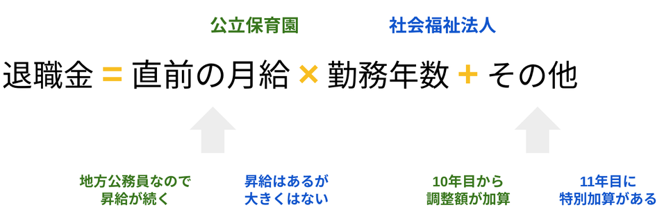 公立保育園と、社会福祉法人に関しては、退職金の計算方法が Web 上に公開されています。その他の制度・法人でも、一定のルールをもって退職金が計算されます。