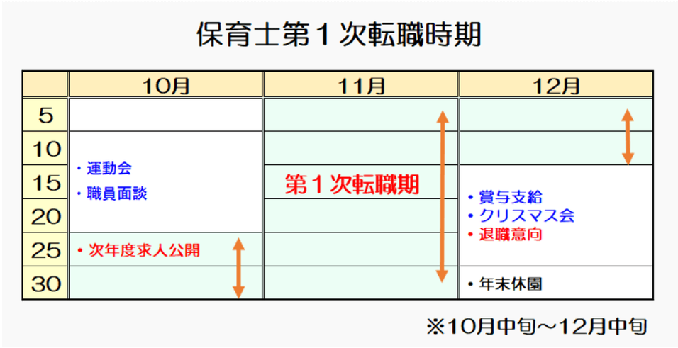 当然保育園側も、保育士側も出来ればこの第1次時期に決めたいというのが本音ですが、保育士は平日に休暇が取りづらい。11月にも行事が入っていたりすると第1次時期に動けないという事情もあります。ただ2月末には転職市場はだいぶ落ち着き、3月に入ると余裕を持って職員体制を整えるという意味合いで若干名の募集に変わっていきます。