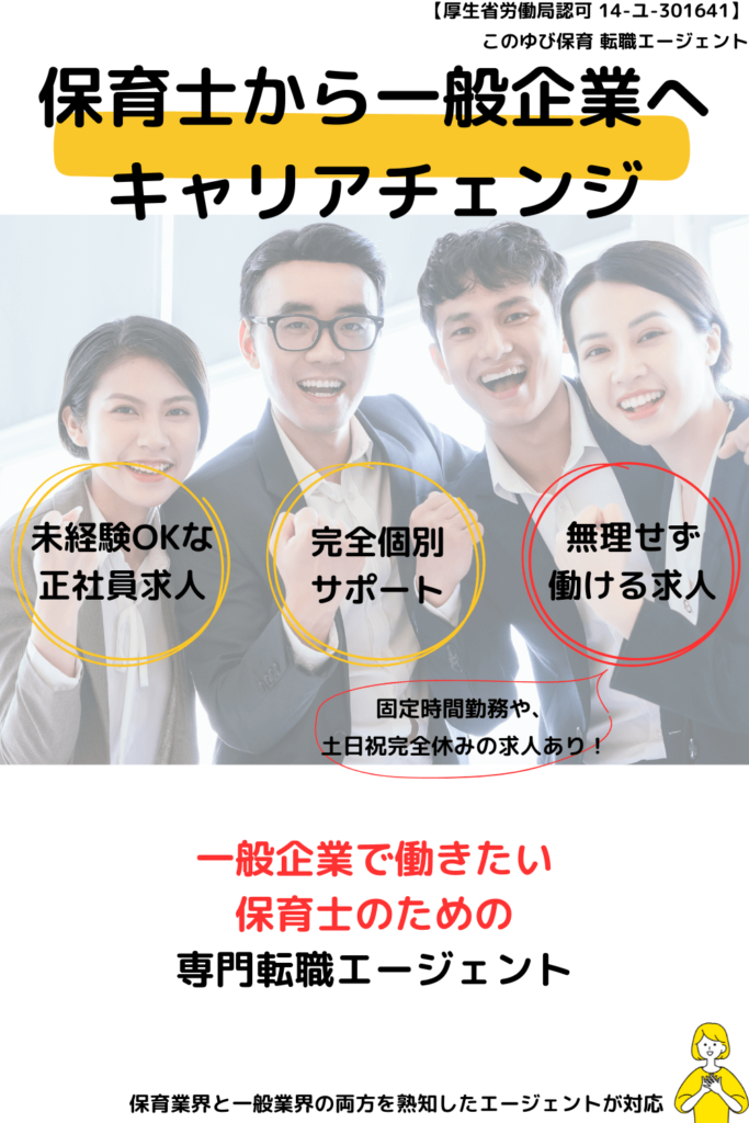 一般業界は、保育業界と異なるところが多く、もしかすると保育士よりも向いている仕事が見つかるかもしれません。